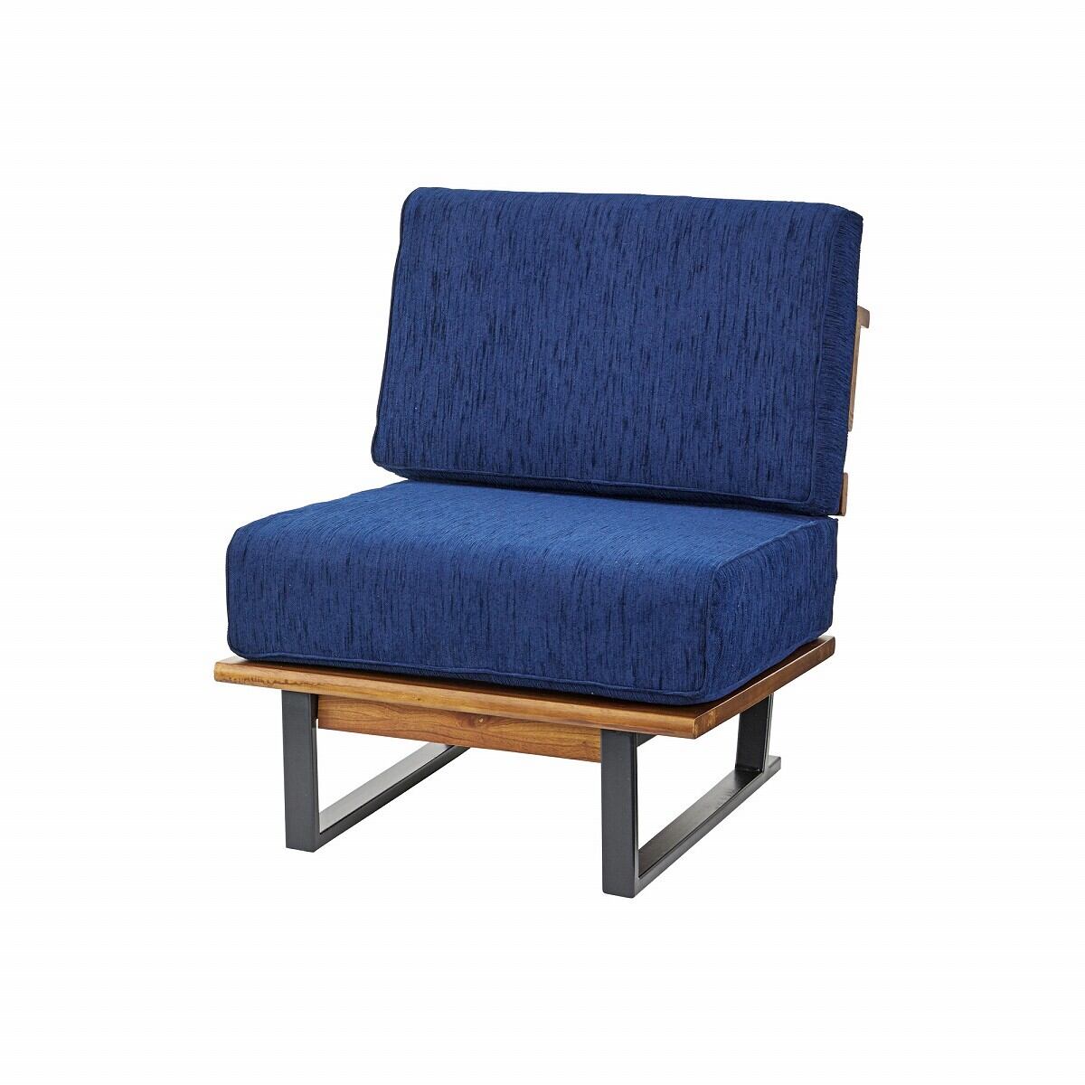 天然木ウッドフレームとスチール脚の異素材ミックスのソファ