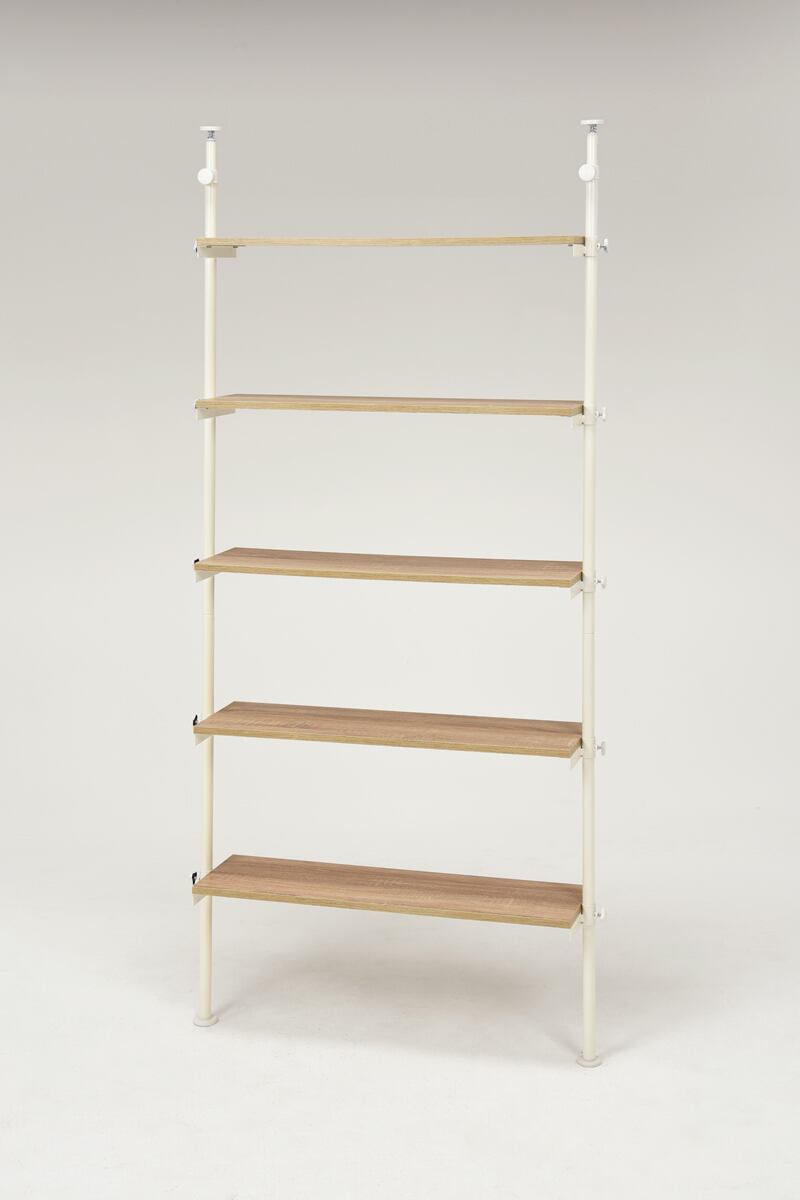高さ無段階調整可能な棚でスッキリ収納できる、つっぱり5段ラック。