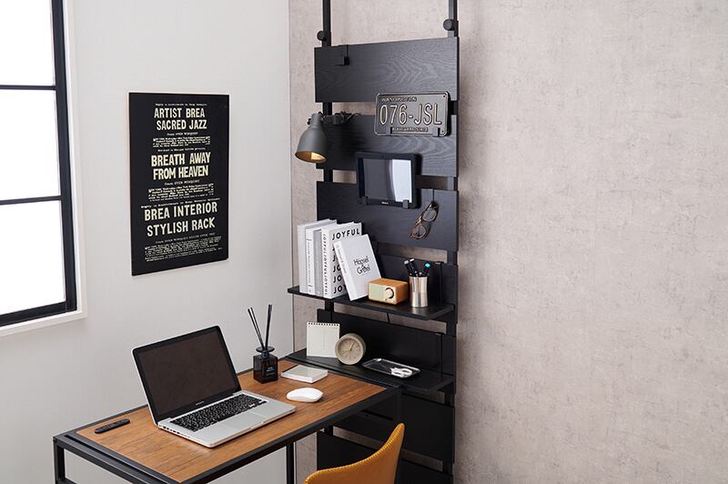 お部屋のいろいろな場所に設置できる突っ張り式ラック。パーテーションや間仕切りとしても活躍します。幅60cmタイプ