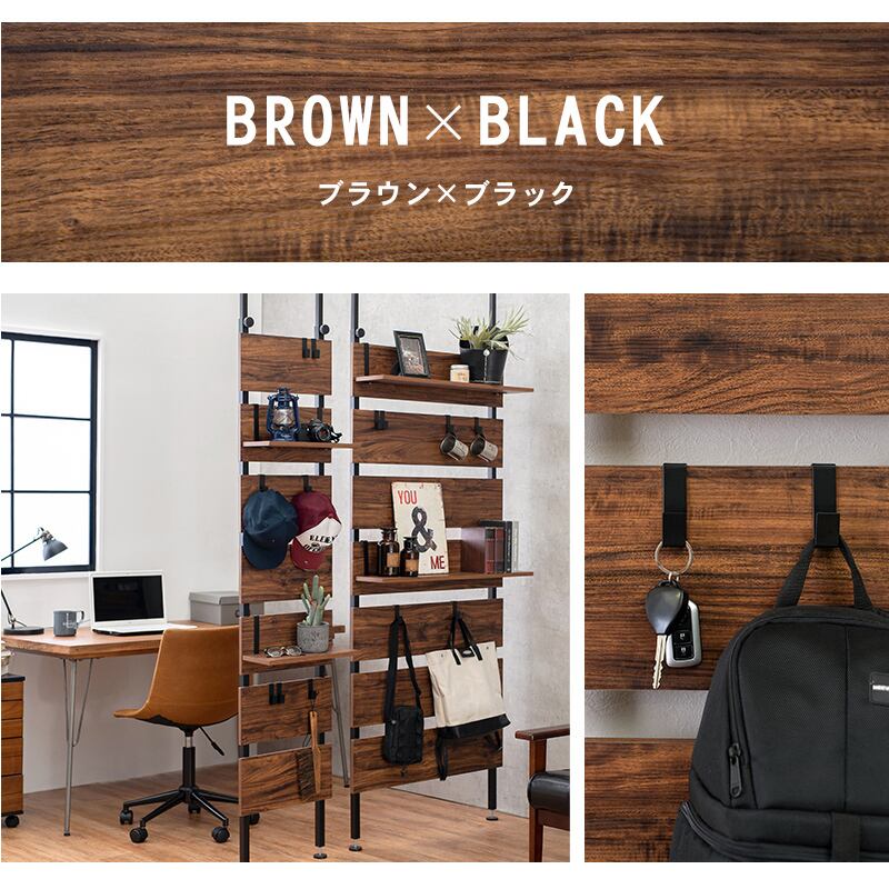 お部屋のいろいろな場所に設置できる突っ張り式ラック。パーテーションや間仕切りとしても活躍します。幅40cmタイプ