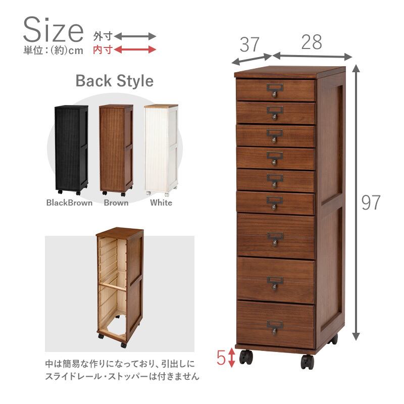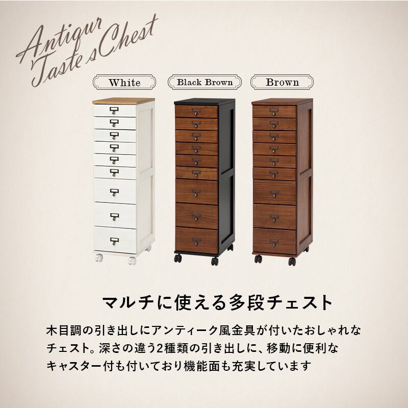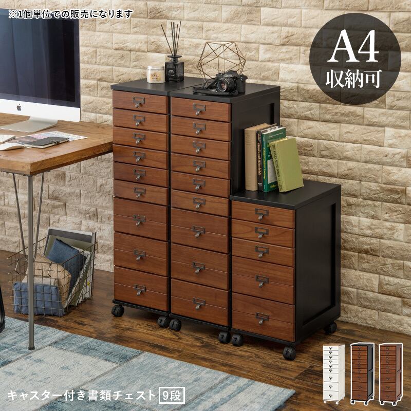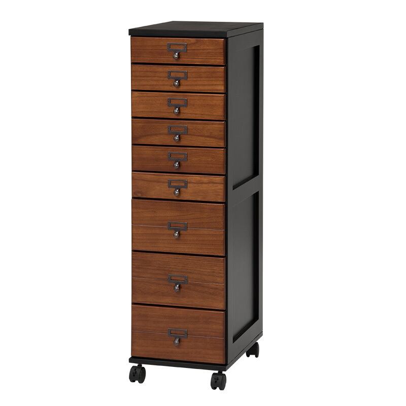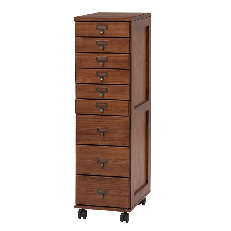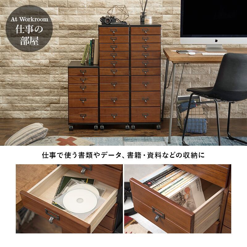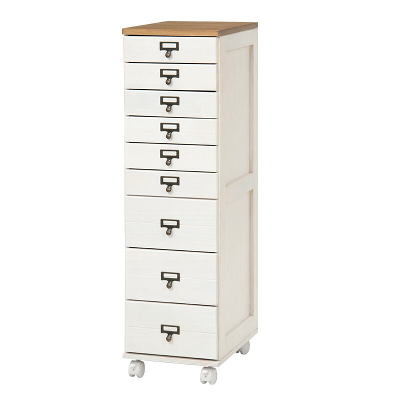 キャスター付きで移動も楽な多段チェスト。引出しにはA4クリアファイル収納可能。