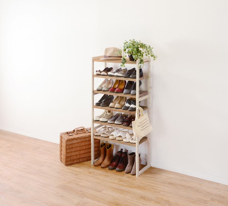 棚の高さ調節ができるので大きなシューズも収納可能なシューズラック。