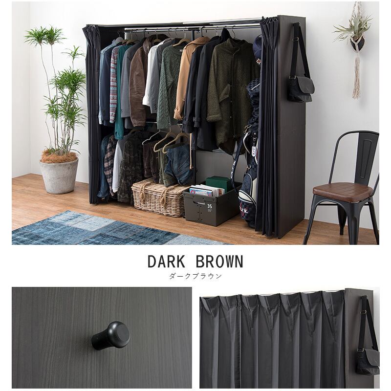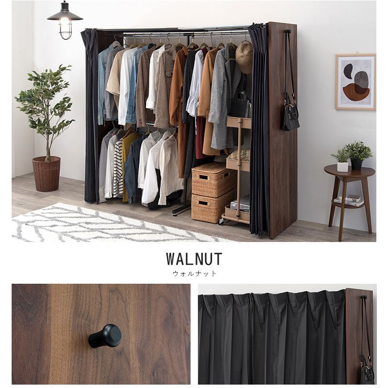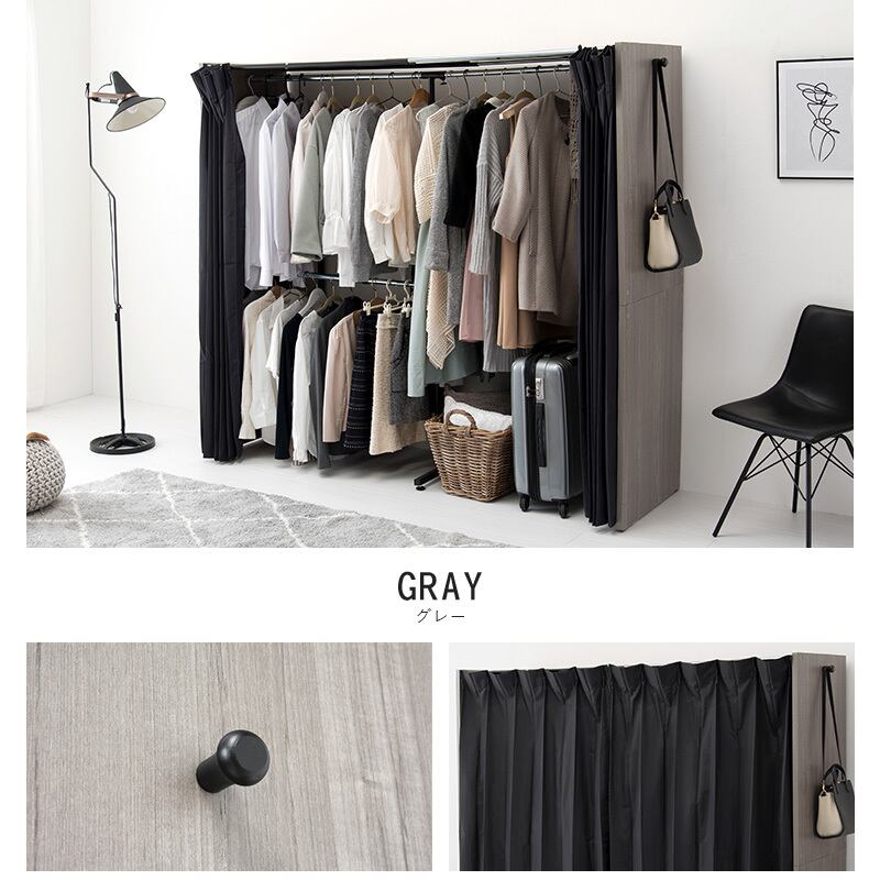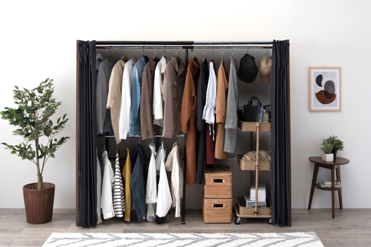スペースに合わせて伸縮可能なクローゼットハンガー。カーテン付き。