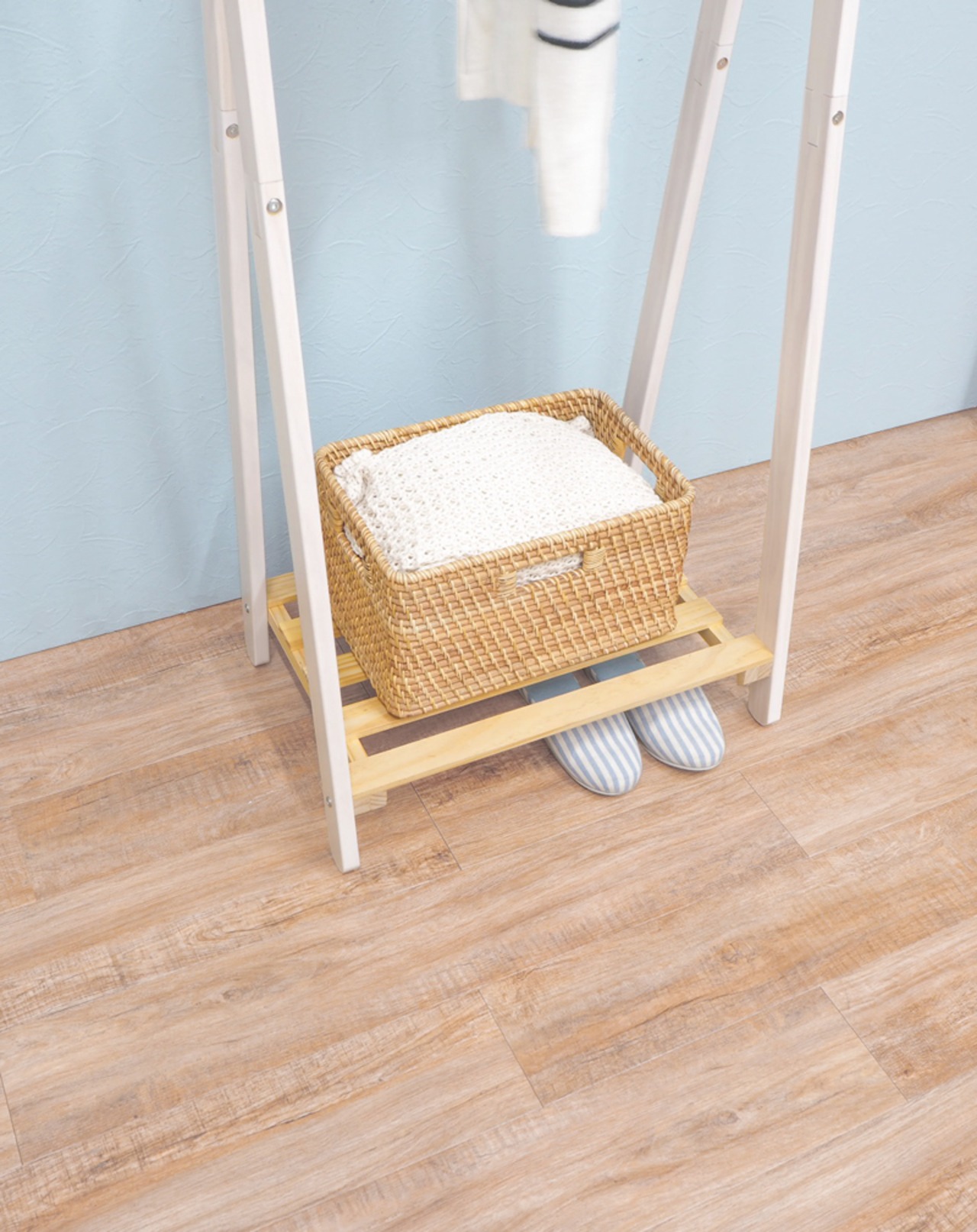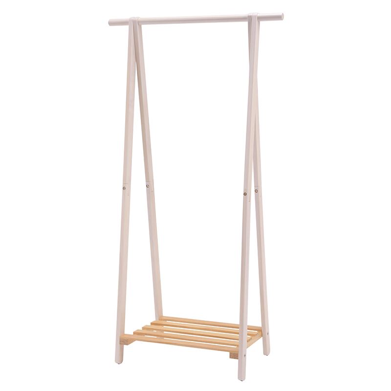 天然木の風合いがおしゃれな棚付きハンガーラック