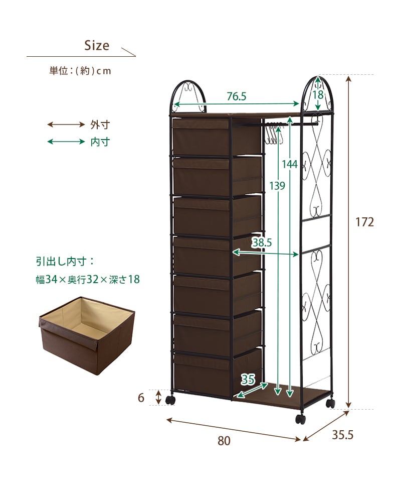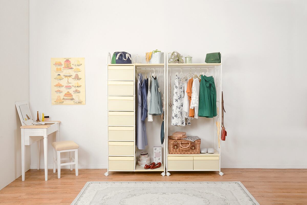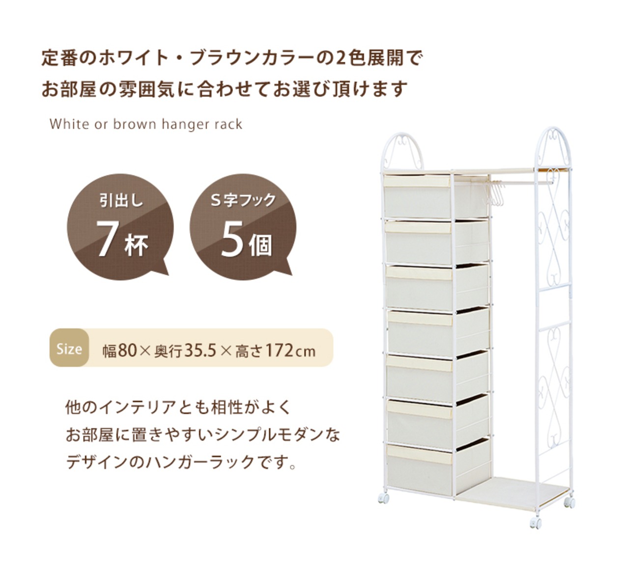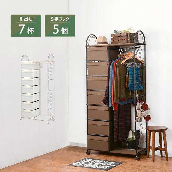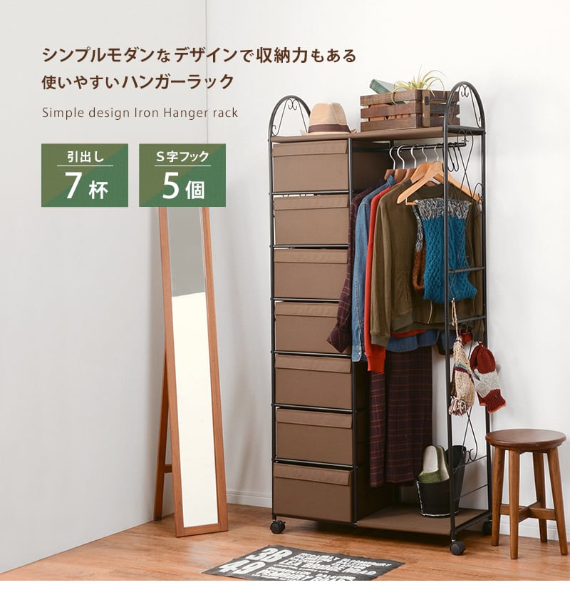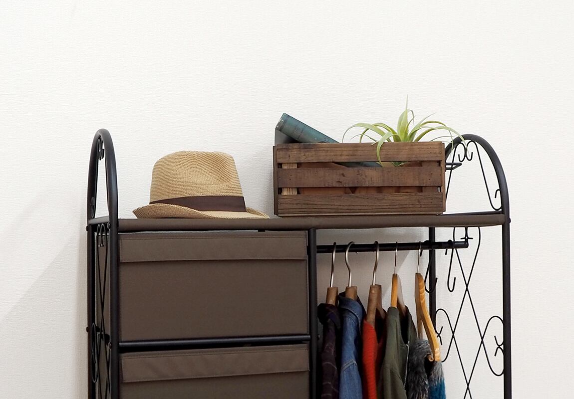 アイアンの曲線がエレガント、衣類や帽子・小物類も美しく収納できるハンガーラック。