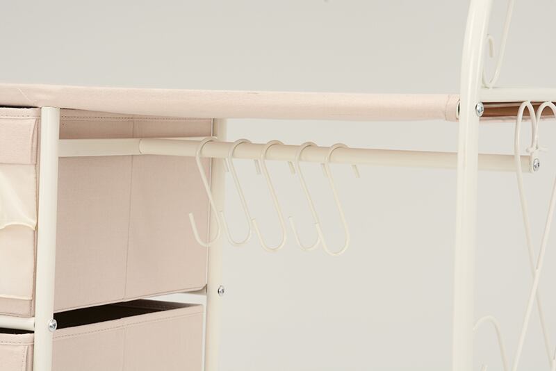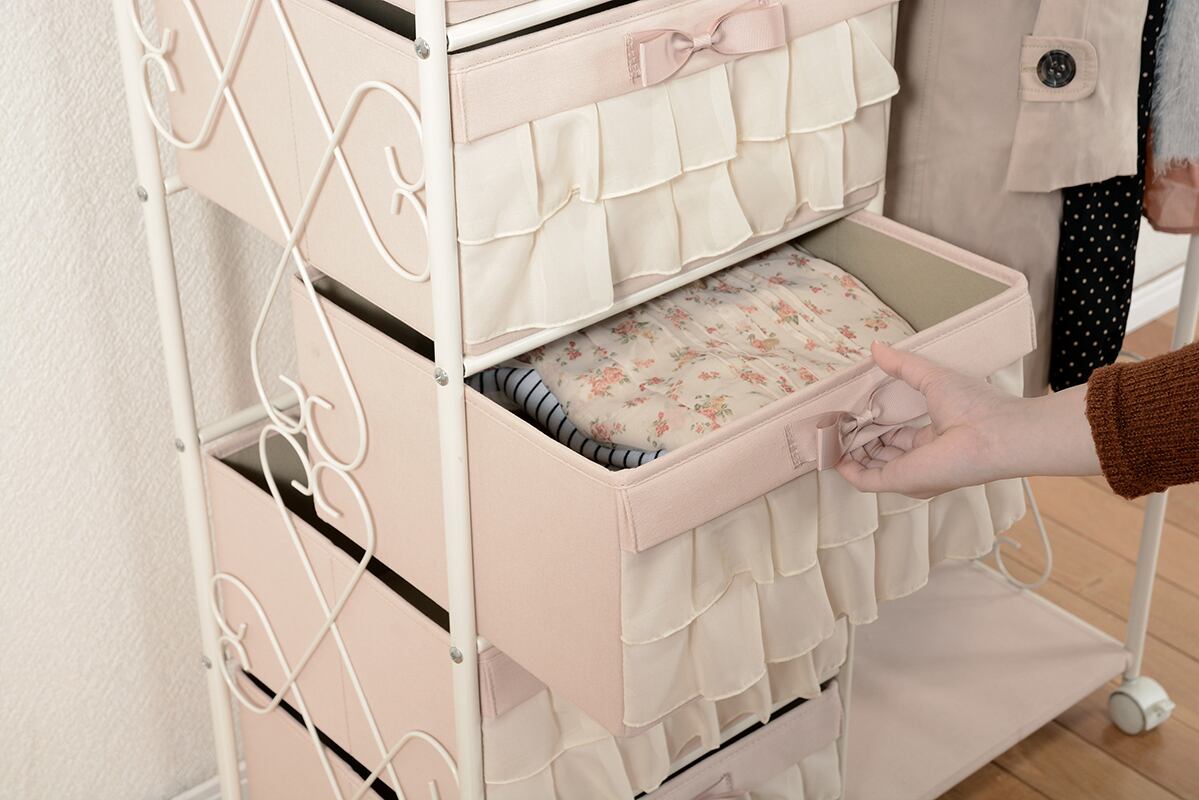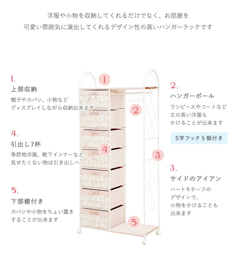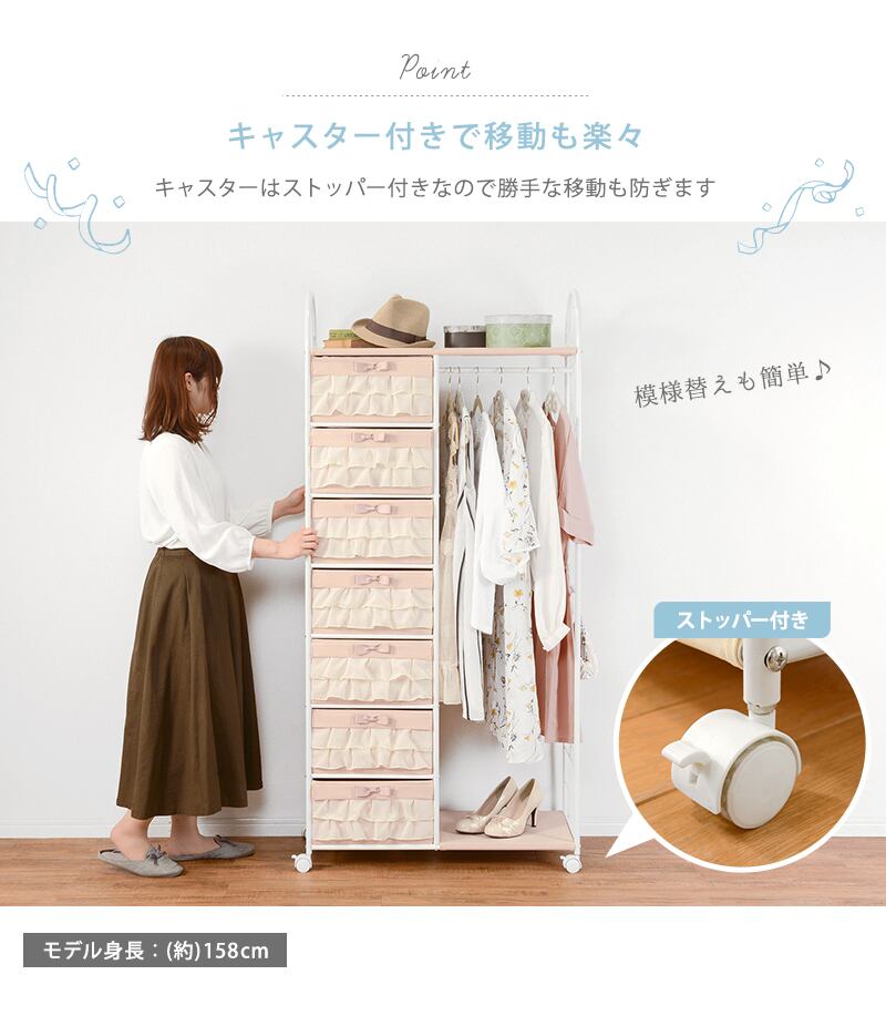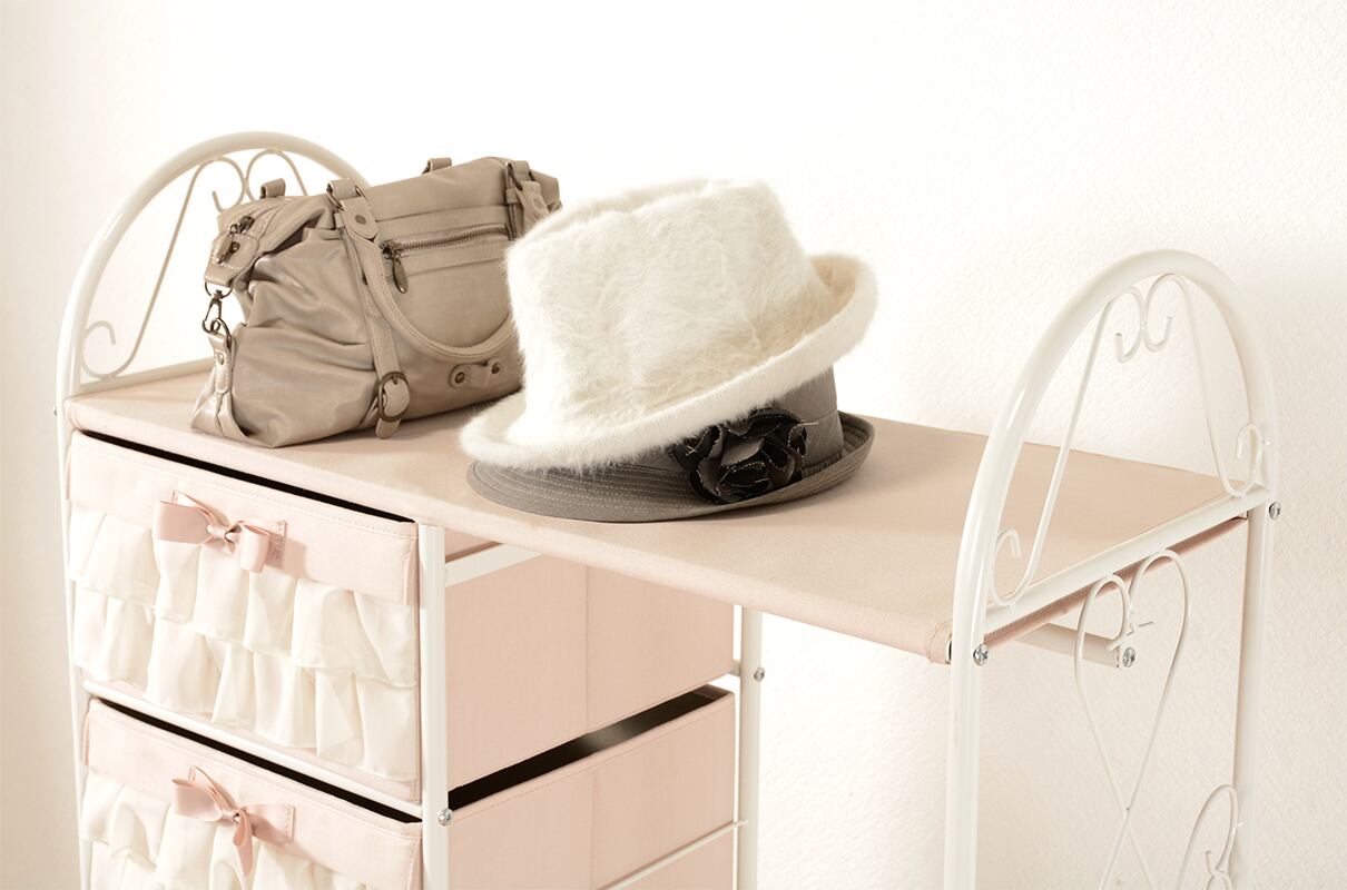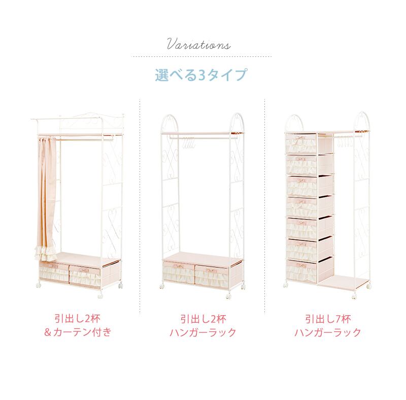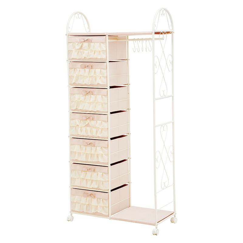 フリルが可愛い乙女心をくすぐるエレガントなコートラック。引き出し7杯付き。