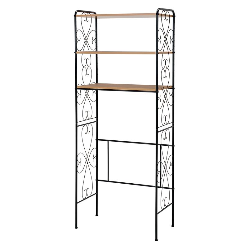 アイアンの曲線がエレガントで、洗濯機の上を有効活用できる洗濯機ラック。