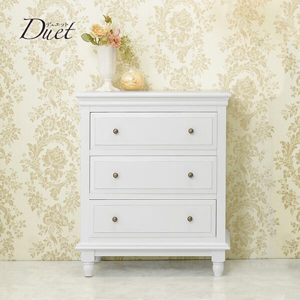 ところどころに剥がし塗装を施したシャビーテイストなシンプルデザインのワイドチェスト