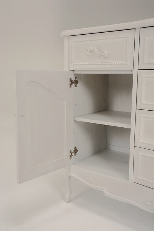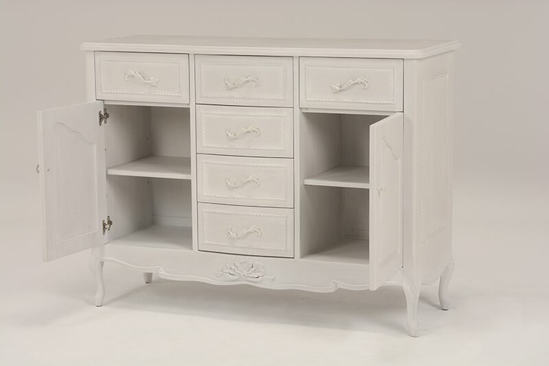 クラシックな上品さとモダンなテイストをあわせ持つアンティーク風ワイドキャビネット。