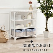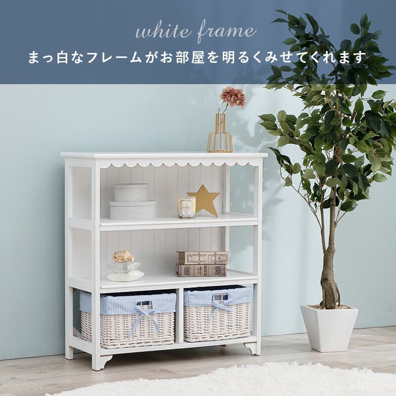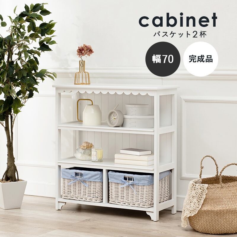 まるでフリルが付いたようなデザインが可愛いデザインのキャビネット。内布付きバスケット2つ付き