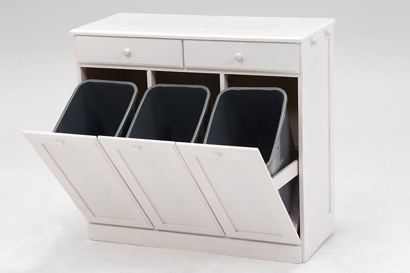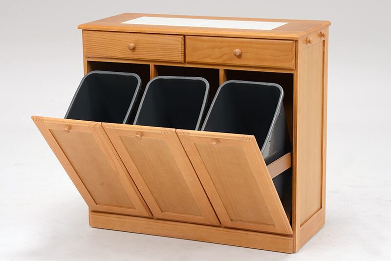 ゴミ箱に見えないデザインと収納力、天然木パイン材の温もりあふれるダストボックス。25リットル3分別タイプ