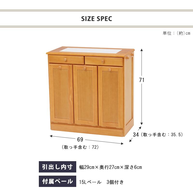 ゴミ箱に見えないデザインと収納力、天然木パイン材の温もりあふれるダストボックス。15リットル3分別タイプ