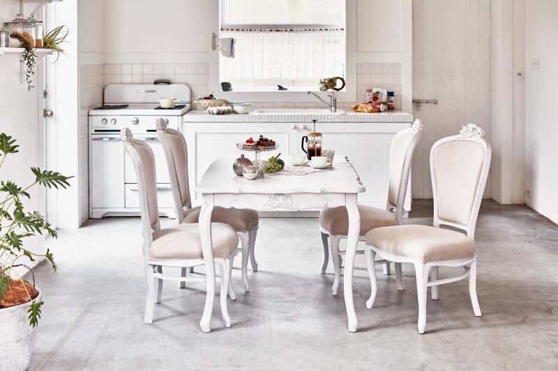 クラシックな上品さとモダンなテイストをあわせ持つアンティーク風ダイニングチェア。