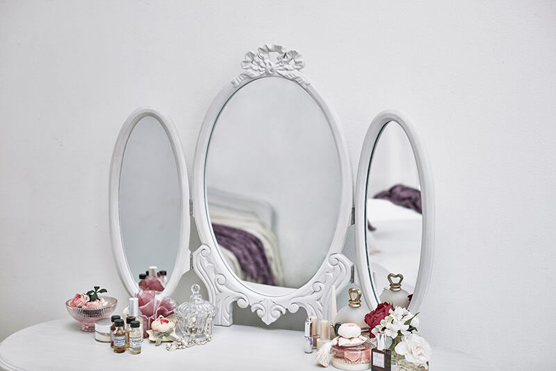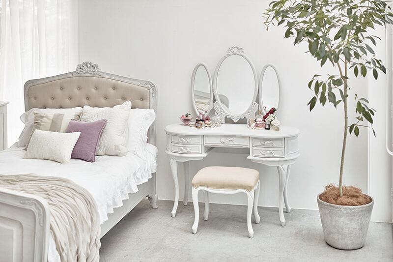 クラシックな上品さとモダンなテイストをあわせ持つアンティーク風ドレッサー。
