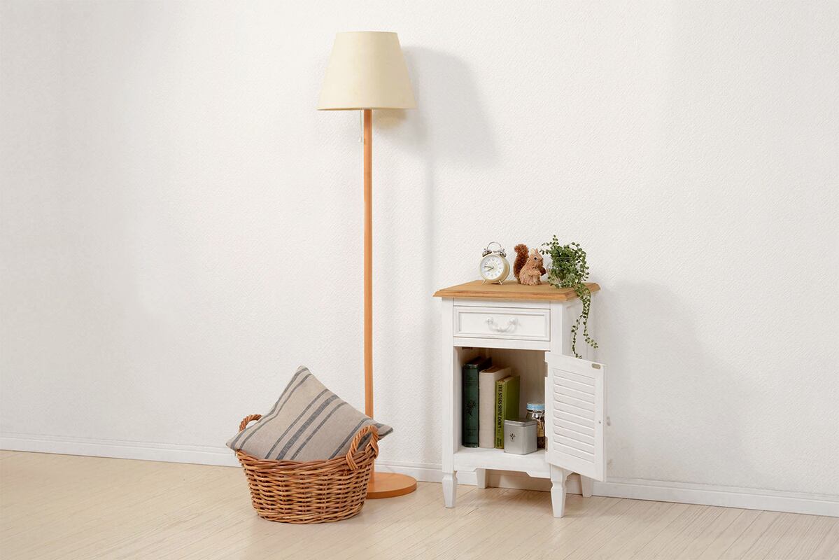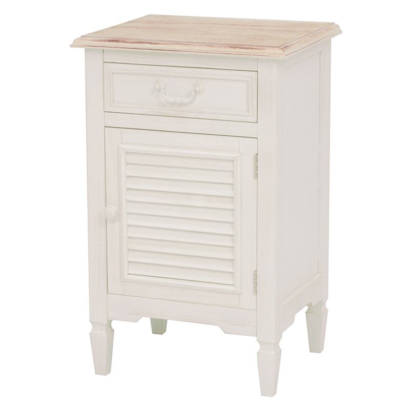 優しい雰囲気と高級感を感じられるアンティーク調のルーバータイプのサイドチェストです。