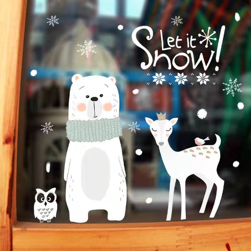 商品名:ガラスステッカー クリスマスシリーズ5 ホワイトベアーと鹿