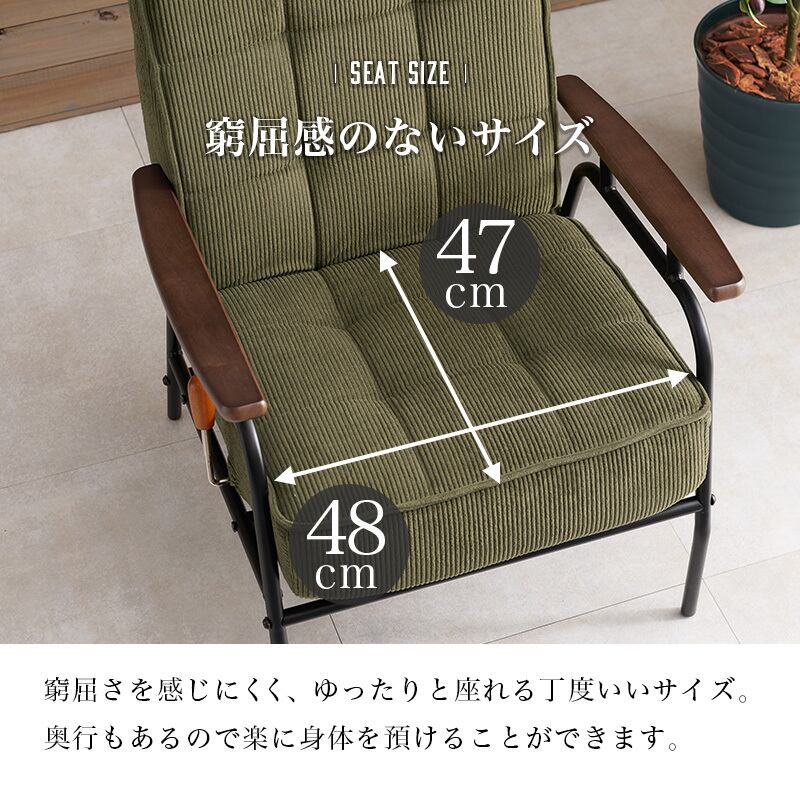 スチール脚と張地の相性が良くヴィンテージな雰囲気を楽しめる一人掛けソファ。座面のポケットコイルと背もたれのリクライニングで座り心地にもこだわっています。